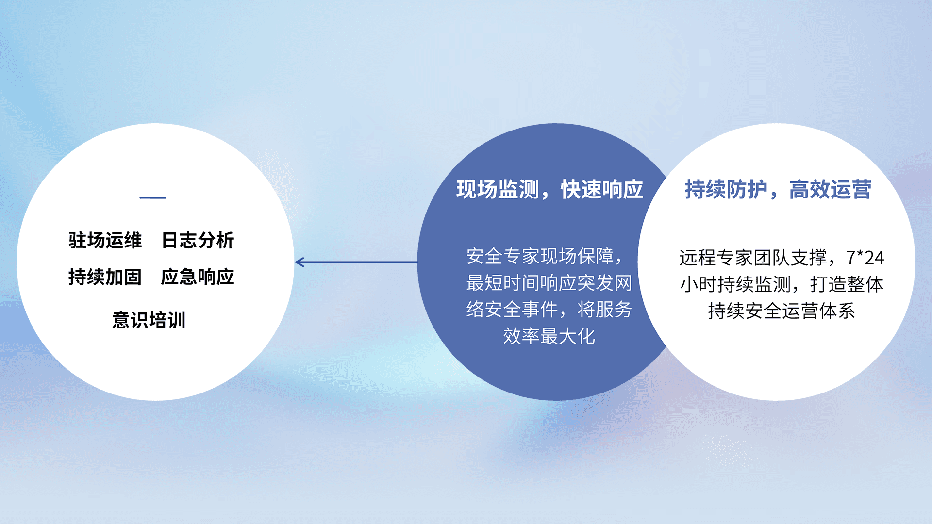 7X24小时持续监测安全事件,保持安全策略有效性,降低资产脆弱性风险,,,精准拦截黑客攻击,,减少被黑客利用的机会,,第一时间遏制,,,,降低损失。。